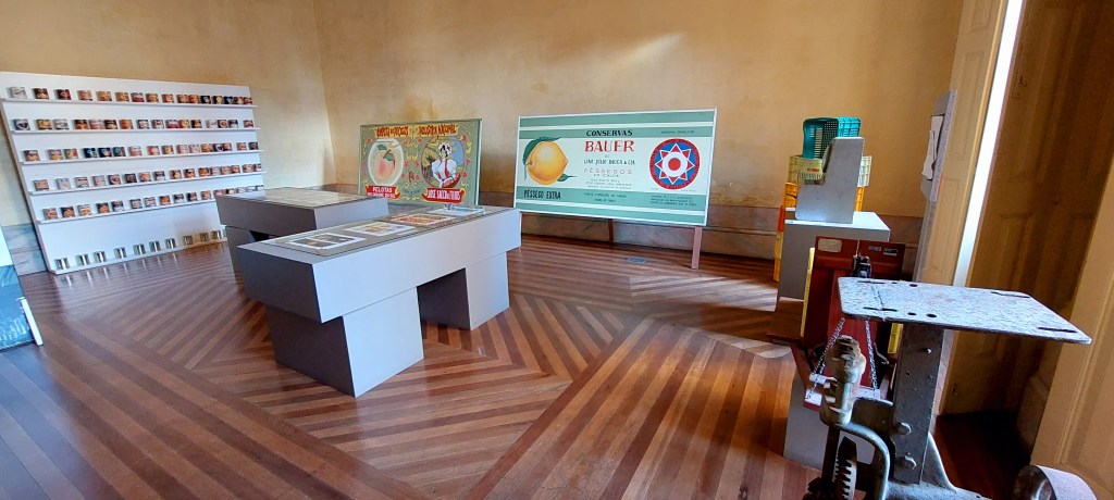 Mas a tradição doceira não para por aí. A presença de imigrantes franceses, italianos, alemães e mais portugueses, fez com que a produção de frutas surgisse de forma mais intensa, e o açúcar era o conservante ideal. Pequenas produções familiares com rudimentares equipamentos para fabricação de doces de pêssego, laranja, figo, entre outros, mostrados em outra das salas, começam surgir na zona rural. E com a prosperidade veio a modernidade da produção em série, embalada em latas com o nome das famílias transformados em marcas. Em uma prateleira da mostra estão réplicas destas embalagens, onde a história de cada um está também escrita para que se conheça suas trajetórias particulares…