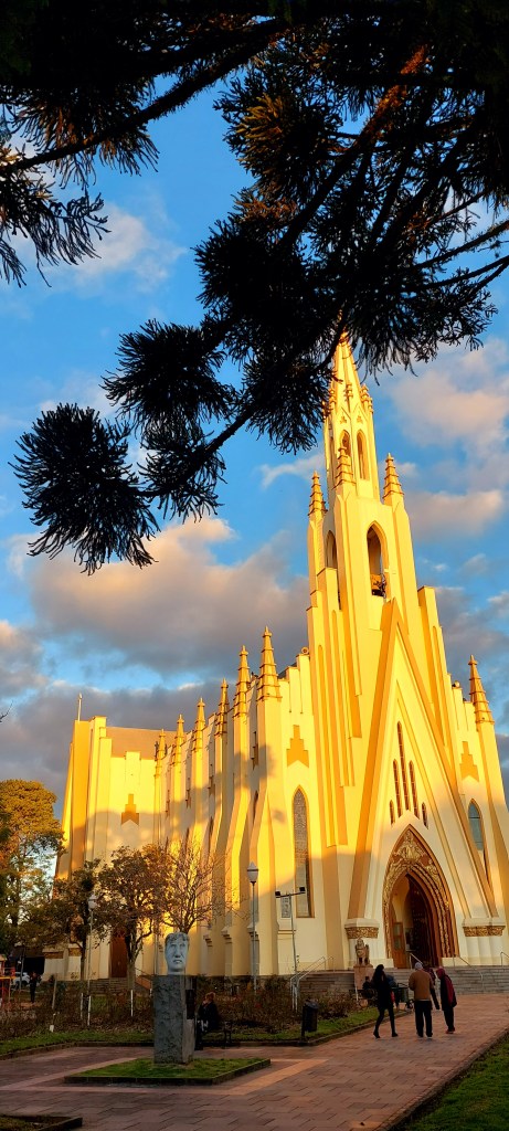 Uma outra igreja um pouco mais moderna, finalizada em 1954 e que homenageia o Cristo Rei, fica a poucos metros da estação. A praça em frente, além de bem cuidados jardins, possui altas araucárias, uma espécie de árvore símbolo da serra. A composição da vegetação e da esbelta igreja, principalmente quando detalhes dourados, são iluminadas pelo sol da tarde, proporciona belas imagens. Um convite irrecusável, para aquela foto que muitos gostam de postar nas redes…