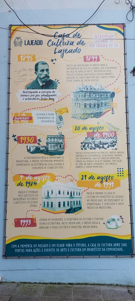 Bem na frente da praça, o prédio imponente que já foi intendência e cadeia, erguido em 1900, hoje é o centro irradiador de cultura de Lajeado. Um espaço que tem muito a contribuir principalmente por seu rico museu, que possui muito mais do que objetos antigos. É um espaço vivo de histórias e vivências…