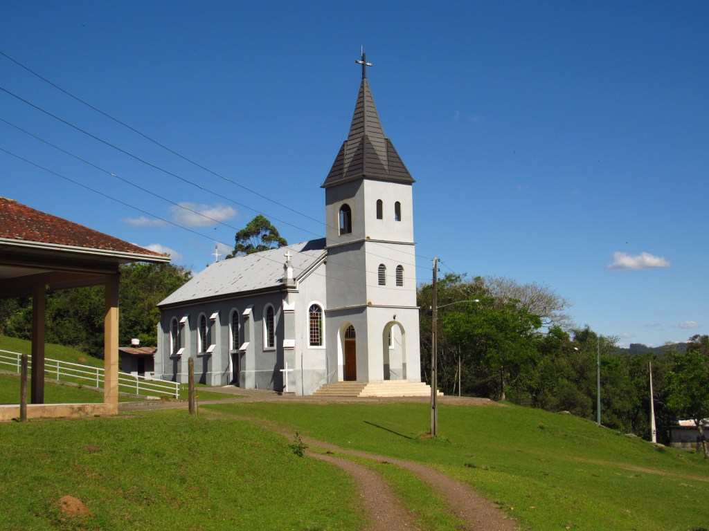 Foi a sua porção mais baixa que percorremos recentemente, em um trajeto entre São José do Hortêncio e Linha Nova, passando pela comunidade de Capela do Rosário. É ali inclusive que nos deparamos com uma igreja, em que a construção teria se iniciado em 1891. Mas só recentemente é que foi incorporado uma cúpula com um belo formato, que remete a antigas igrejas europeias… E a composição dela com a paisagem de um ponto onde os morros parecem abraçá-la, forma um cenário encantador. Com direito há mais um cemitério com seus testemunhos e reflexões…