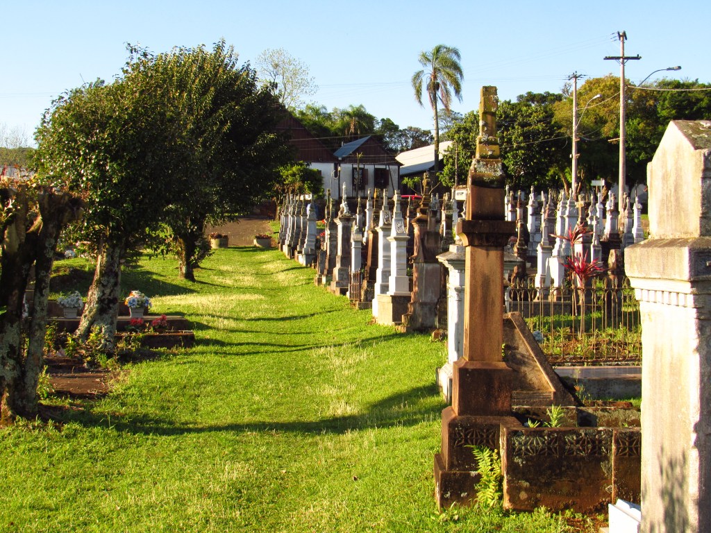 O idioma alemão, inclusive faz parte da cultura da cidade. Ele é falado nas ruas por pessoas de mais idade, e está nas lápides do antigo e belo cemitério bem em frente à igreja. Passear pelo sue gramado em meio a lápides com suas obras de arte, é uma experiência rica e um mergulho em tempos passados…