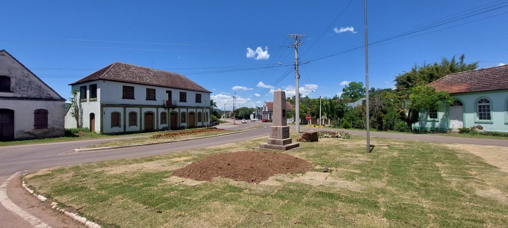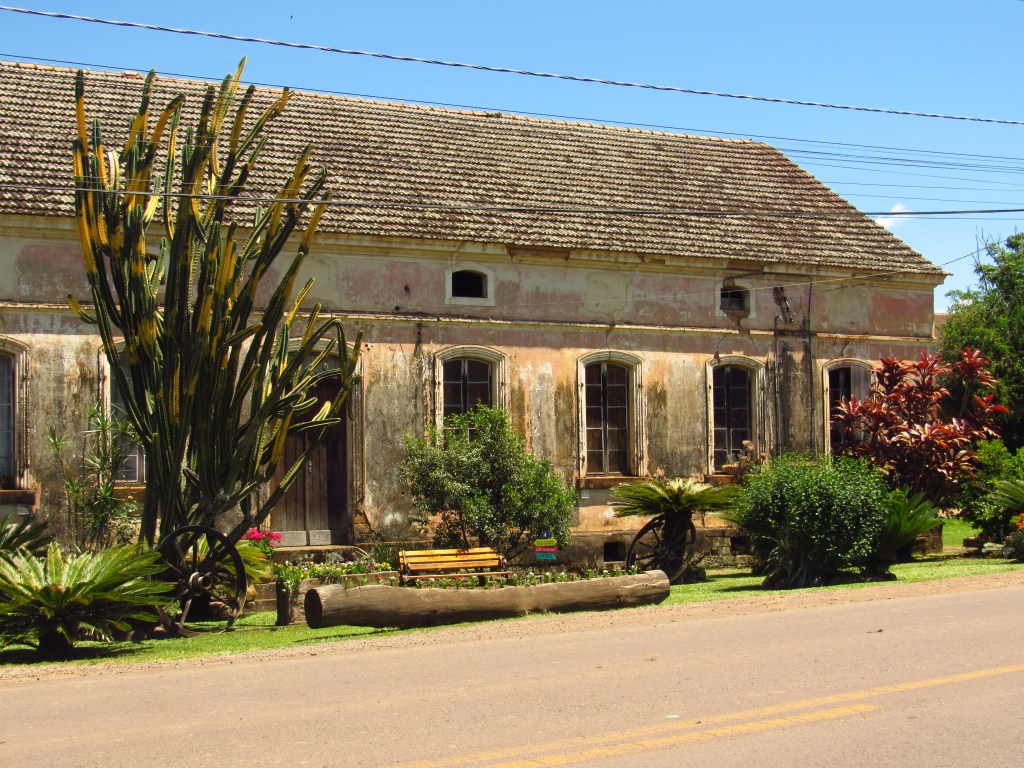 O roteiro segue em estrada asfaltada passando por belos casarões e bem cuidadas plantações que criam cenários inspiradores. Mesmo que algumas destas casas, primores da arquitetura típica da imigração germânica da virada do século XIX para o XX, precisarem de um restauro, elas nos transmitem um brilho e um charme únicos… Um par destes prédios foi reservado para um espaço cultural, acompanhado por outro em pedra, onde funciona um Centro Integrado Entre Gerações. Ali, certamente são contadas histórias de avôs e avós, a atentos netos e netas, que se põem a imaginar a vida em outros tempos… Por alguns problemas deste dia, não conseguimos pegar estes lugares abertos. Mas temos certeza, que muitas das histórias ali contadas estão sendo registradas para os que vem depois de nós…