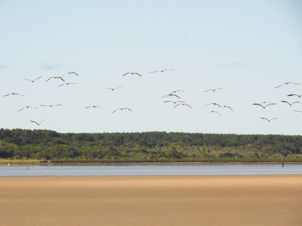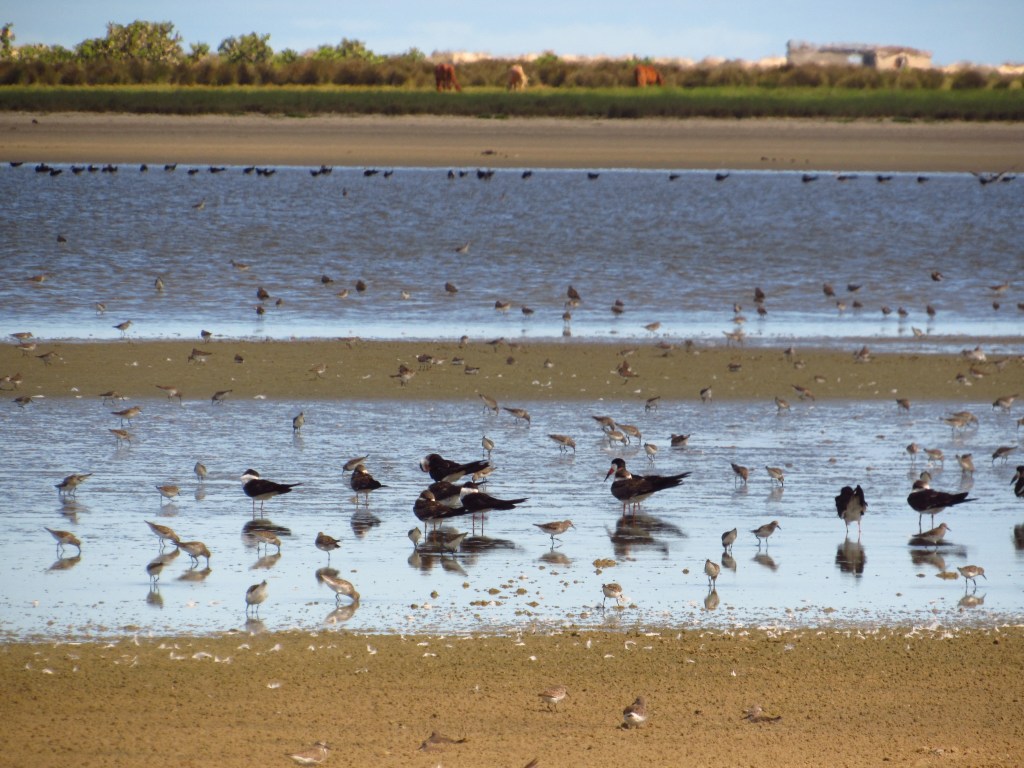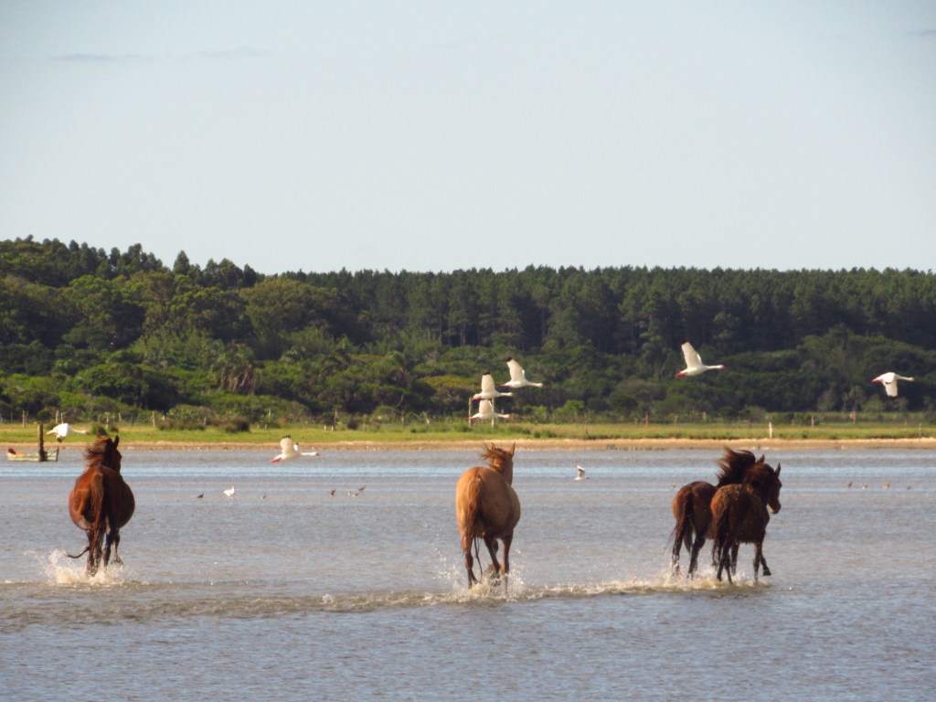 Em meio à tarde que avançava, enquanto as aves se alimentavam neste lugar farto em comida para várias espécies, por sua proximidade com o mar, um grupo de cavalos passou cavalgando por dentro da água. Soltos, sem comando, eles por vezes avançaram galopando, espantando os bandos que apenas descansavam ao sol…