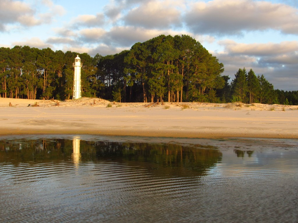 Erguido por ordem do então imperador Dom Pedro II, ficou pronto em 1849 em madeira. Que ao não resistir ao tempo e aos ventos constantes da região, foi substituído nos anos 1880 por outro de metal, que segue ali até hoje… E o isolamento dele permanece, pois as cidades e seus prédios e casas ainda estão distantes… Partindo-se de Tavares, são cerca de 13 km de estrada de chão, incluindo um percurso pelas areias das margens da lagoa, em uma solidão encantadora…