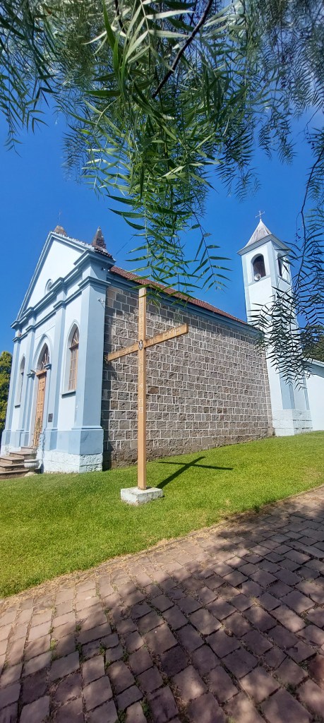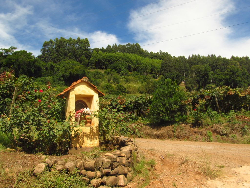 A data deverá marcar o fim da colheita dos cachos que preencheram as belas paisagens do interior, onde ainda visitamos mais uma capelinha centenária (também com campanário) em homenagem a São Pedro. Além de ao longo da nossa jornada (que neste dia ainda foi em outros lugares da vizinha Farroupilha já mostrados aqui), termos nos deparados com os característicos capitéis. Pequenos oratórios com um santo ou uma santa, para o exercício da fé na beira da estrada…