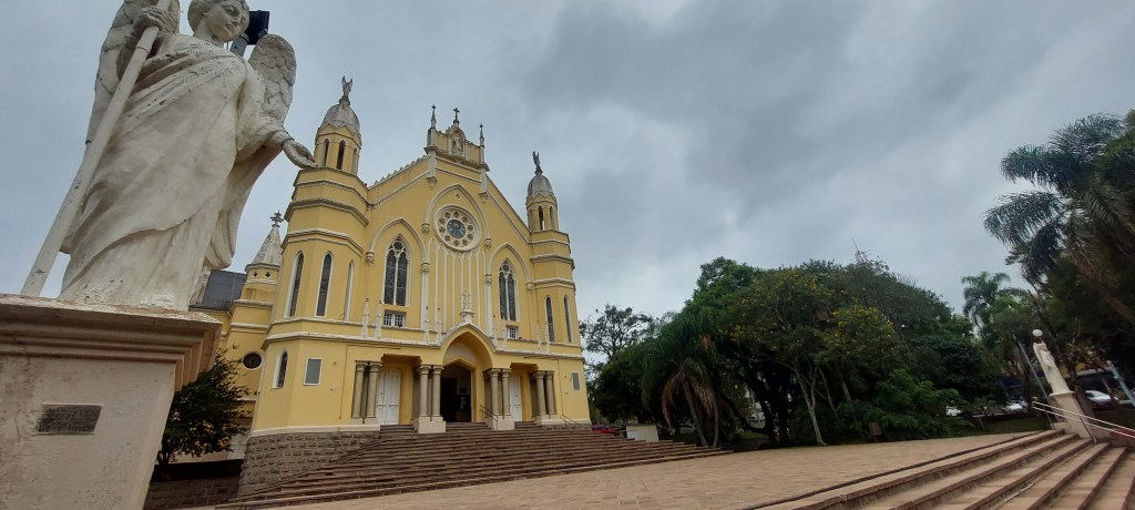 A devoção religiosa da comunidade formada na sua maioria por imigrantes italianos, apesar de portugueses, poloneses e alemães também terem aportado por estas terras já habitadas por índios coroados, resultou na construção de uma igreja imponente. O santuário Nossa Senhora Aparecida foi erguido entre 1938 e 1942, e recebeu uma imagem da padroeira do Brasil, por intermédio do Bispo de Caxias Dom José Barea. Seu alto campanário se impõe na paisagem e um interior belíssimo é composto por impressionantes vitrais e pinturas não menos belas, principalmente uma com a cena do batismo de São João Batista…