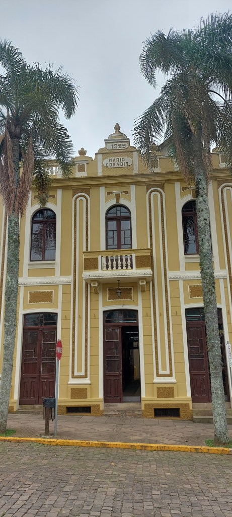 E logo ali ao lado um casarão erguido em 1929, tem o nome de Mario Coradin destacado na fachada, fazendo referência ao empreiteiro que rasgou a serra, na construção de uma das primeiras ligações da cidade com o sul do estado. Foi ele que construiu a casa de dois pisos, hoje ocupada por escritórios da prefeitura, mas também por uma biblioteca pública, além de espaços para atividades culturais…