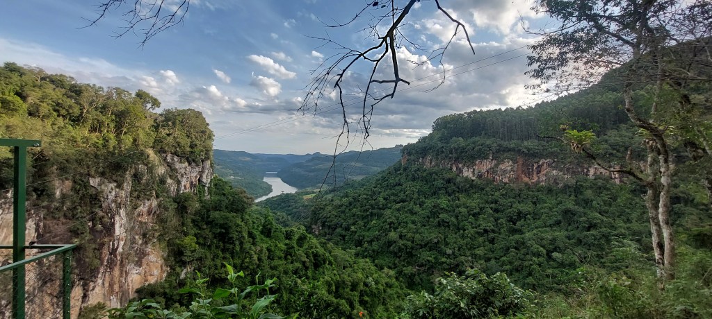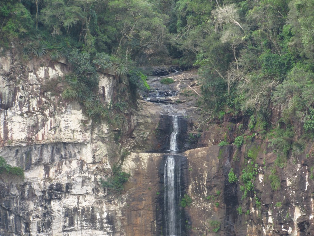 A poucos quilômetros da zona urbana da cidade, se pode apreciar de um mirante ao longe, a queda espetacular antes mesmo de se entrar no parque onde ela fica. Dali se descortina ainda a bela vista do vale do Arroio Sapatinho, que forma a cascata, e uma parte do Rio Carreiro que o recebe… Mas o destaque mesmo é a alta queda que despenca de um paredão vertical natural, em uma primeira etapa. Pois o fluxo segue no meio da mata, para reaparecer em uma nova queda que desliza sobre outro leito de pedras…