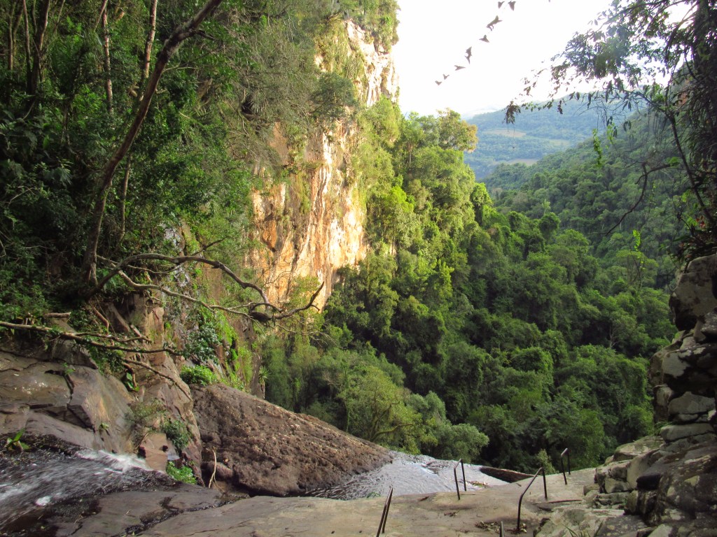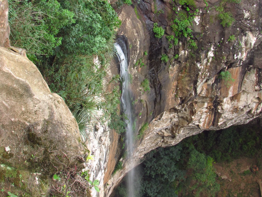 Em uma primeira visita, não nos aventuramos nestas experiências, nos contentando além da apreciação da parte de cima da queda, em descer uma trilha íngreme até base da cascata. Lá é possível ter mais uma bela visão, a partir de outro mirante.