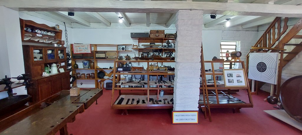 Mas é no museu que se consegue conhecer um pouco mais dos desafios enfrentados por estes pioneiros. Objetos das incipientes indústrias e réplica de armários dos antigos armazéns estão lá para apreciação dos visitantes ávidos por mergulharem em outros tempos… Também está devidamente valorizado o estudo com a presença de lousas, algumas delas que foram utilizadas por alguns anos pelo próprio Waldemar, que fez questão de mostrar como se escreviam nelas…