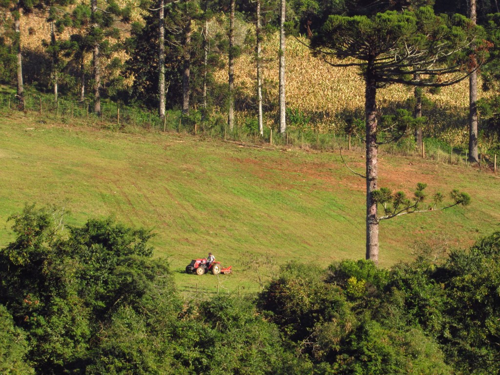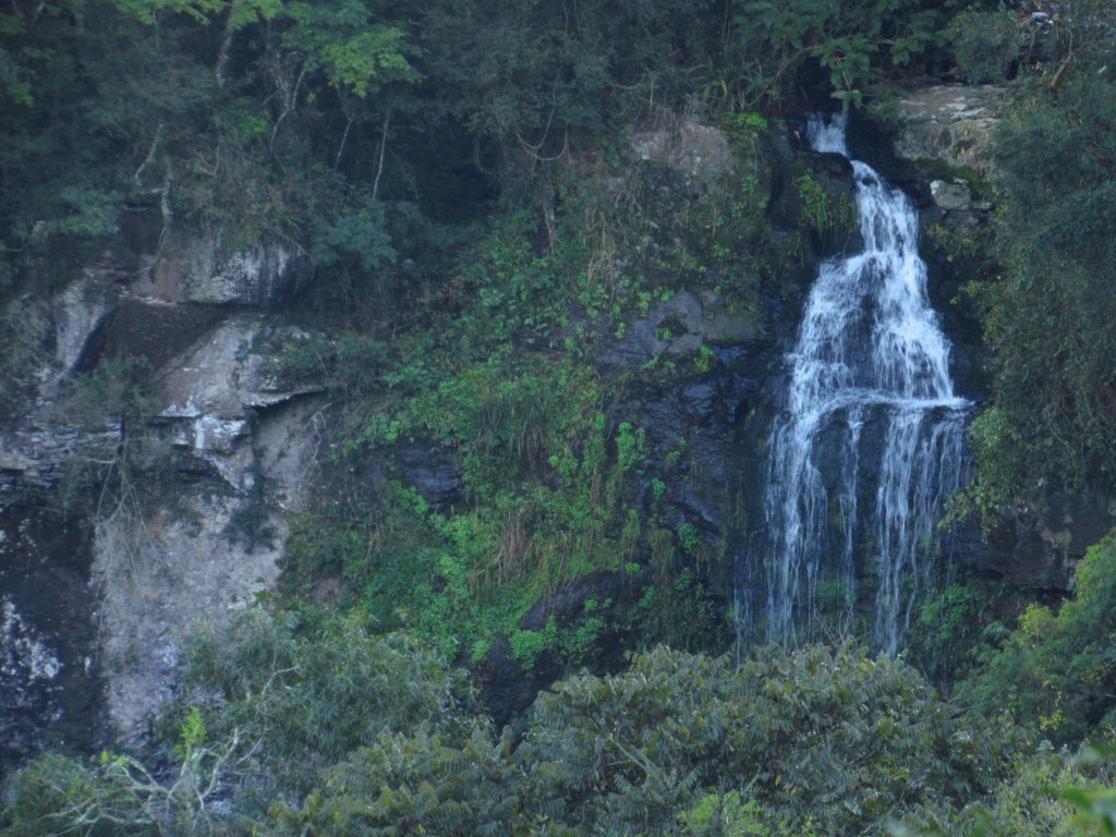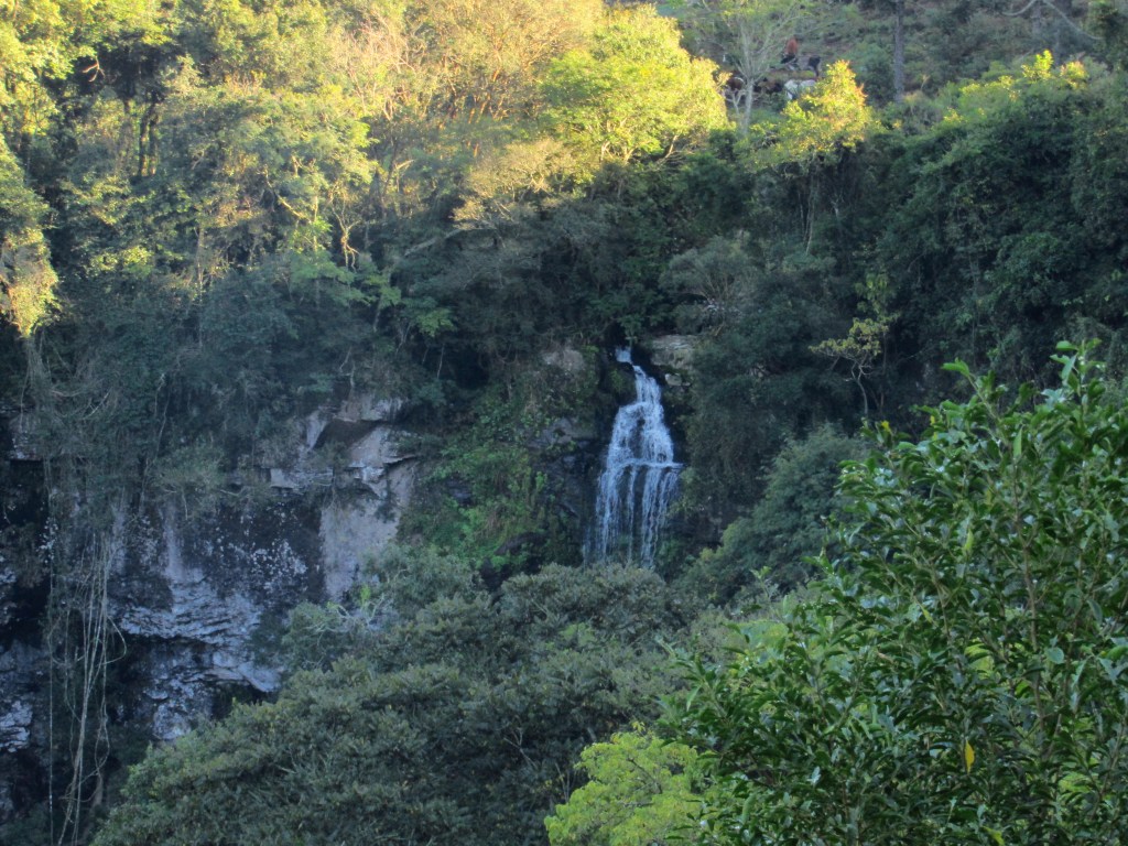 Muitas vezes, porém as quedas podem ser apreciadas da beira da estrada de chão onde se circula com facilidade de carro. Foi o caso da Cascata Sete de Castro, que com base em informações de outros aventureiros, soubemos que a trilha seria longa e difícil… Optamos por só pegar imagens de longe, dando preferência para outra de caminho mais curto. Seguimos então a jornada, encontrando belas paisagens com as tradicionais araucárias, e alguns plátanos com as folhas amareladas pelo outono. E locais para visualizar paisagens mais amplas, também fizeram parte da rota…