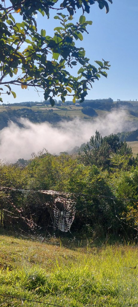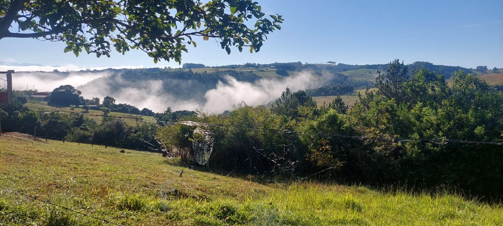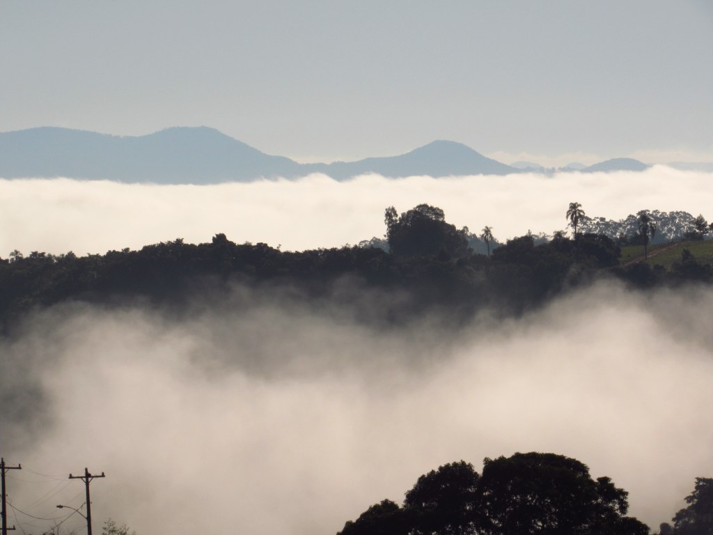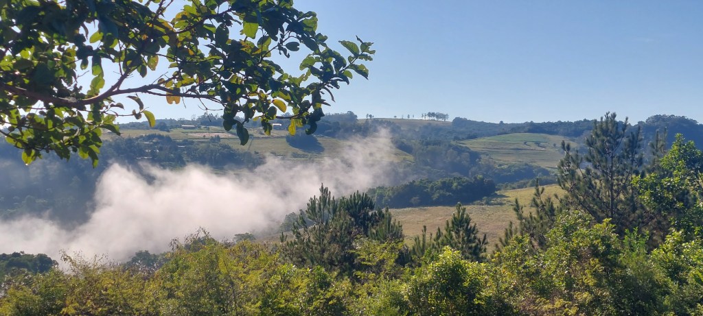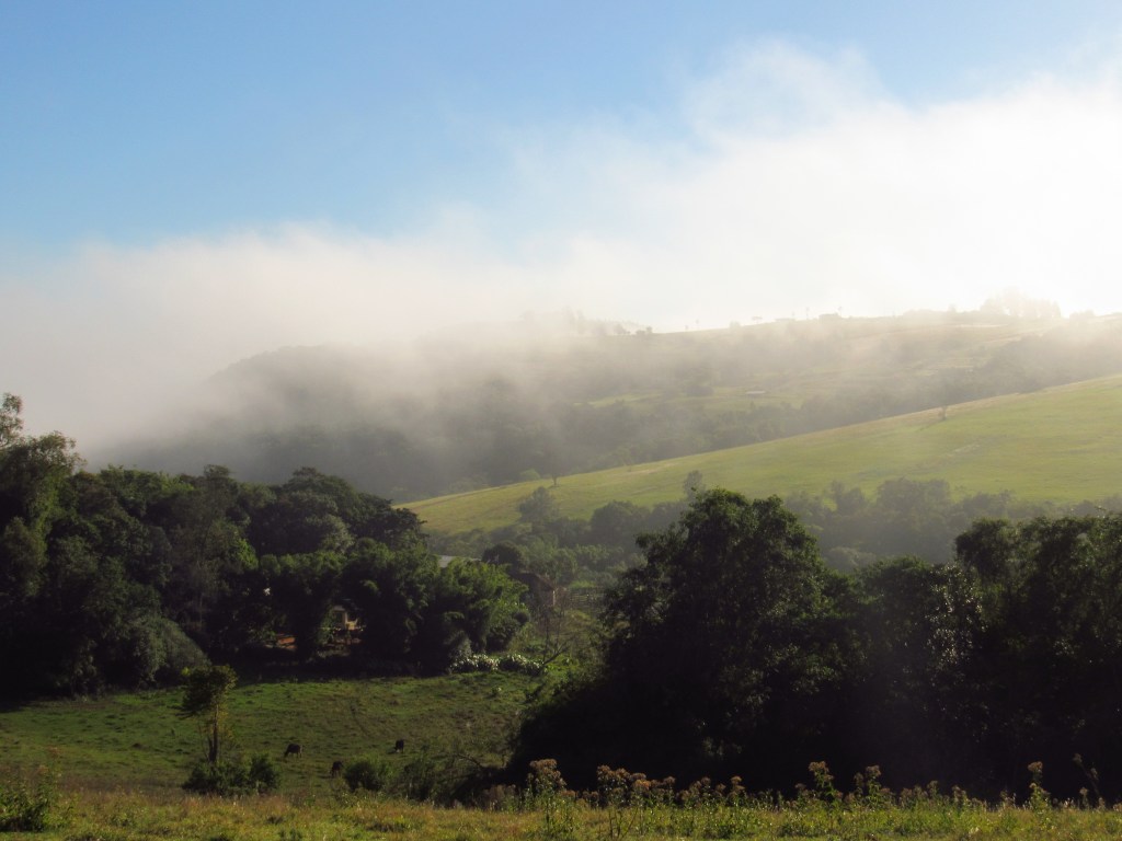 Seguimos em frente na expectativa da abertura do sol, o que se confirmou quando já andávamos pela zona rural, onde a surpresa foi à cerração vista de longe a partir de pontos mais altos… Um espetáculo inesquecível…