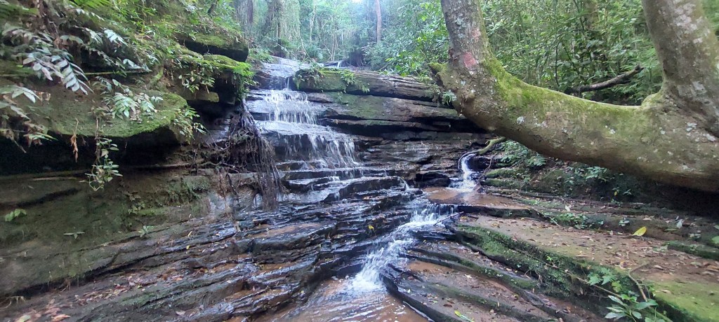 E as ondulações do terreno já permite que se encontre algumas quedas d´água como a Cascata São Jacó. Seu porte é pequeno, abaixo da altura média das que trazemos por aqui, mas a formação rochosa é muito interessante… Mais uma bela surpresa da natureza…