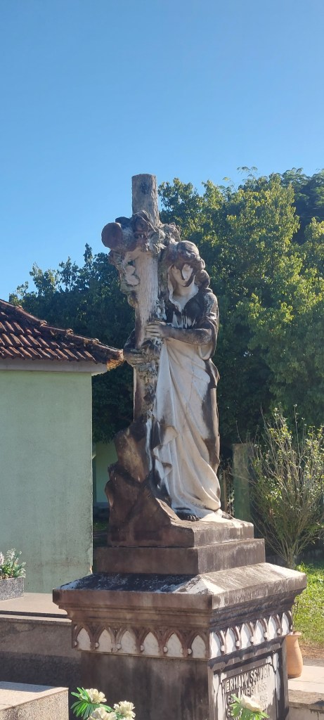 Com o sol brilhando em manhã amena de começo de junho, voltamos para pegar mais imagens das igrejas e estatuas de seus cemitérios. Estas verdadeiras obras de arte em um museu a céu aberto estão presentes tanto entre católicos quanto luteranos.