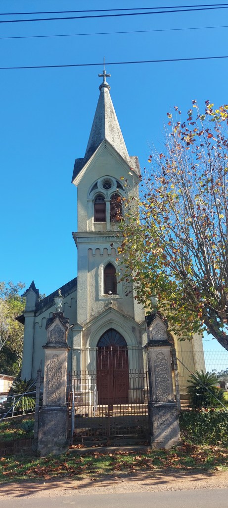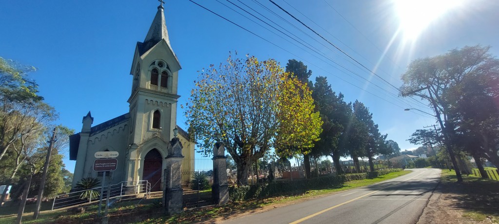 Em homenagem a São José, a igreja católica é mais nova, dos anos 1940, e seu tom esverdeado se destaca em meio ao alaranjado dos vários plátanos que a rodeiam na rua principal do distrito… Já a luterana foi construída bem antes em 1848, mas sem a torre, só finalizada em 1894 após liberação pelo estado brasileiro, com o advento da república em 1889… Esta tem uma vista privilegiada da paisagem ondulada de uma bela região rural. Que vem recebendo diversos investimentos no ramo do turismo, principalmente gastronômico e de lazer, para atrair cada vez mais visitantes.
