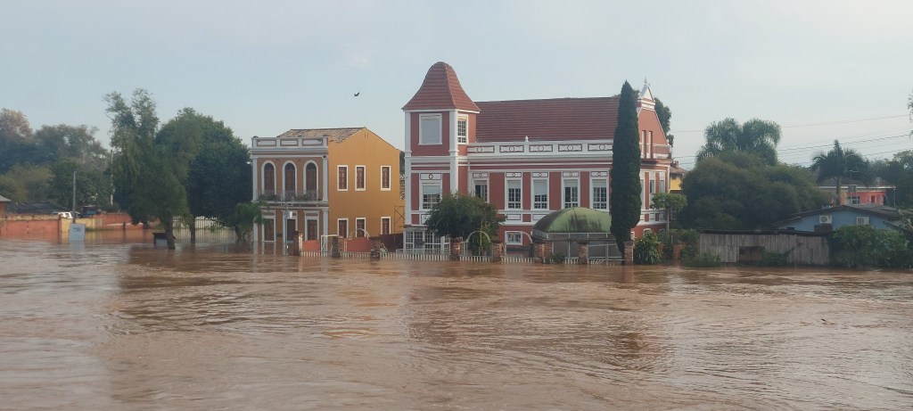 O mais grave, no entanto foi às perdas de vida que ocorreram em algumas cidades como a vizinha, Lindolfo Collor onde cerca de 1.000 pessoas tiveram que sair de suas casas. Também houveram muitos desalojados que usufruíram do Ginásio Municipal de São Leopoldo, onde passamos na manhã deste dia 20 de junho, para levar uma doação de mantimentos. Depois de modestamente contribuir para os que perderam muito, pudemos conferir que o Rio dos Sinos ainda estava alto, e havia invadido prédios da Secretaria do Meio Ambiente e do Museu das Águas. Este último também já mostrado recentemente em outros conteúdos por aqui…
