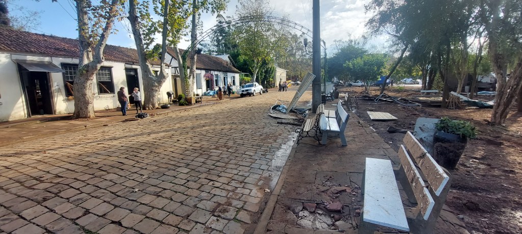 Já falamos por aqui deste conjunto de antigas casas dos primeiros colonizadores germânicos da região, e desta vez fomos presenciar a reconstrução deste patrimônio, depois que as águas chegaram até quase o telhado das casas… Alguns objetos do Museu Cláudio Oscar Becker, foram perdidos e outros arrastados para longe, mas alguns já haviam sido limpos e recuperados por grupos de voluntários que já haviam passado por lá.