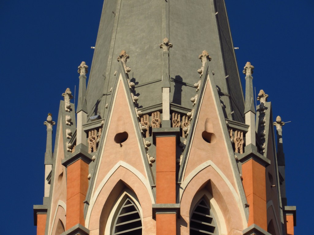 A idéia de substituir a antiga igreja católica existente no local passou a ser realidade com o lançamento da grande obra em 1929. Com projeto do arquiteto alemão Simon Gramlich ela teria o estilo chamado neogótico, por se inspirar no movimento do começo do século XX, de resgatar o gótico europeu dos séculos XII E XIII. E a nave avançou na medida da disponibilidade de recursos da comunidade que viu a conclusão parcial da mesma ocorrer em 1934, pouco depois do templo semelhante levantado em Santa Cruz do Sul. E não foi total por que os recursos acabaram paralisando a obra, só retomada anos depois para que se concluíssem as altas torres em 1952. O projetista inclusive acabou se mudando em meio à execução destes seus projetos, para Santa Catarina em 1932, onde desenhou outras belas igrejas. Sua chegada ao Brasil se deu no começo dos anos 1920, e dizem que ele teria lutado na primeira guerra mundial por sua pátria de nascimento…