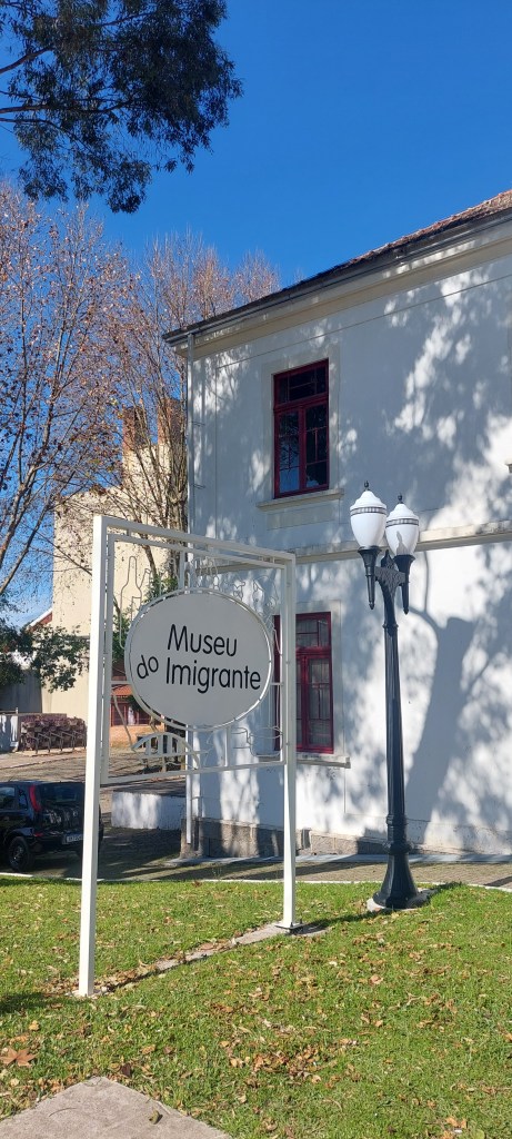 Mas neste dia de retorno a Porto Alegre, nos dedicamos primeiro ao Museu do Imigrante em Bento Gonçalves que já mostramos por aqui. E voltando a este lugar especial para conhecer o ambiente dos primeiros anos da imigração italiana, nos deparamos com uma bela exposição temporária com quadros e esculturas de artistas locais. E o mais interessante, é que além de estas obras ocuparem a sala dedicada a este acervo, algumas obras estavam também mescladas com os objetos antigos da mostra permanente… E a conversa delas com os diferentes ambientes era o toque especial… Na antiga cozinha um quadro que mostrava uma refeição. Junto às antigas pipas da produção do vinho, uma cena inspirada nesta atividade tão importante na região… Enfim, uma ideia original que na nossa visão pode servir de exemplo para outros lugares semelhantes…