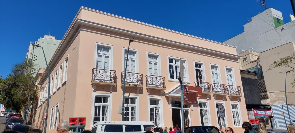 E a subida da Rua Direita (por estar à direita de quem olha a igreja das Dores de frente) foi nosso último percurso para finalizar junto ao antigo sobrado que pertenceu ao então Barão (futuro conde) de Porto Alegre, e que hoje é sede do Instituto dos Arquitetos do Brasil. E neste mesmo dia sua fachada revitalizada estava sendo entregue em mais um momento especial da celebração da Semana Gaúcha do Patrimônio Histórico…