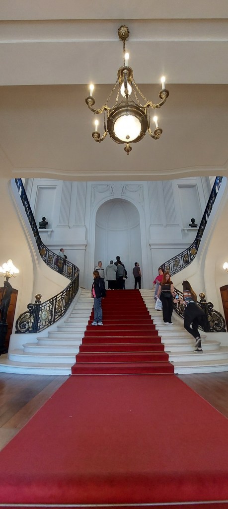E o gabinete onde despacha o governador também pode ser admirado, incluindo um telefone dourado com algumas décadas de idade, que teria sido encomendado por Borges de Medeiros, quando governava o estado… Muitas outras riquezas poderiam ser mais detalhadas aqui com explicações sobre cada recanto e cada obra de arte, que dizem respeito à cultura da nossa gente. Mas como dissemos desta vez a visita foi mais restrita, ficando a promessa para quando a reforma estiver completa, se possam fazer passeios guiados por toda a estrutura, incluindo os jardins internos e a ala residencial…