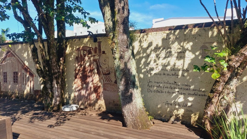 É na Rua Tristão Monteiro, porém que uma série de casarões residenciais e comercias desfilam suas belas e históricas linhas arquitetônicas. Estão lá a Casa dos Dois Leões, por ter duas estátuas destes animais que um dia sediou o comércio dos Dienstmann, a Villa Ernestina que faz referência a Ernestina Bard e a antiga casa Renck, que chegou recentemente a sediar o Museu Municipal. Há outras mais é claro, e cada uma delas merecia ter sua trajetória detalhada e devidamente valorizada… Também nesta rua há um posto de gasolina onde a lavagem de carros é realizada na antiga plataforma da estação de trem da cidade… Neste empreendimento existem também murais com pinturas fazem referência a este passado já um pouco distante…