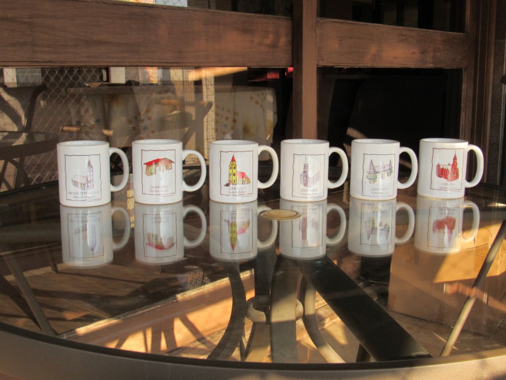 São coleções de singelas canecas de cerâmica com ilustrações impressas com sublimação, dos nossos destinos mais especiais aqui do sul. Concebidas e elaboradas pelo blogueiro João Antônio, as figuras escolhidas são confeccionadas mesclando modernas técnicas de modelagem tridimensional, com a mais pura arte da pintura a mão. Em uma apaixonada releitura das belas formas arquitetônicas, espalhadas pelas exuberantes paisagens do Rio Grande do Sul.